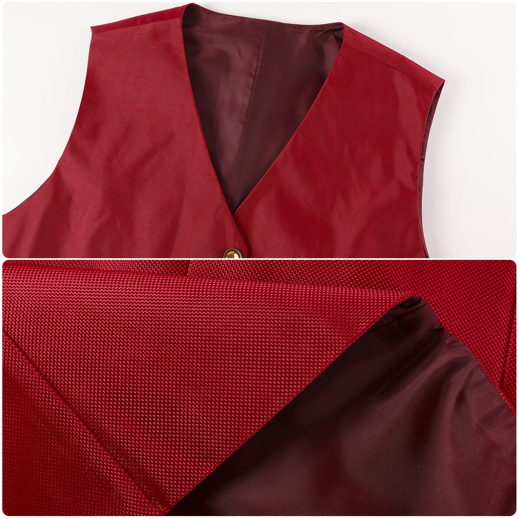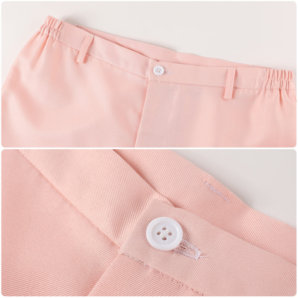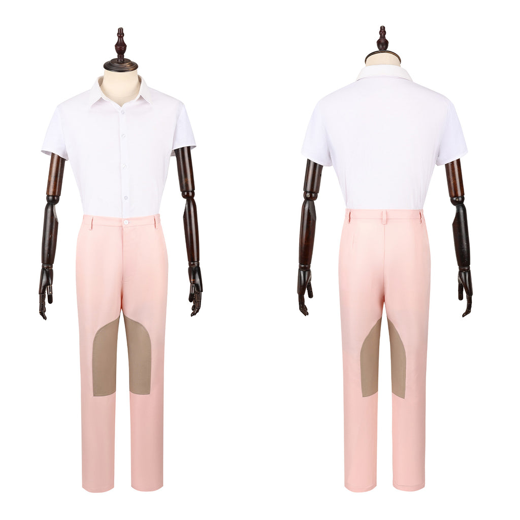 The AwwwCos 3 Pieces Men Movie Wicked Fiyero Boq Cosplay Costume features a stylish and unique design inspired by the characters Fiyero and Boq from Wicked. The outfit includes a sleeveless, loose-fitting red vest with a single-breasted button closure, paired with a white short-sleeve shirt underneath for a clean and sharp look. The pink pants are enhanced with light brown patches on the knees, adding a playful touch to the ensemble. This versatile costume is not only perfect for cosplay events but also a great choice for casual daily wear, effortlessly combining comfort and style while capturing the essence of the characters.