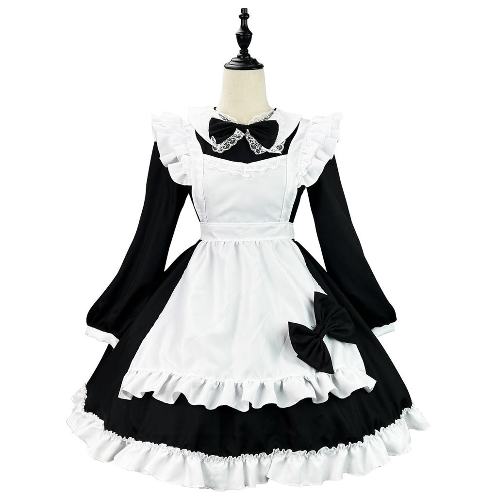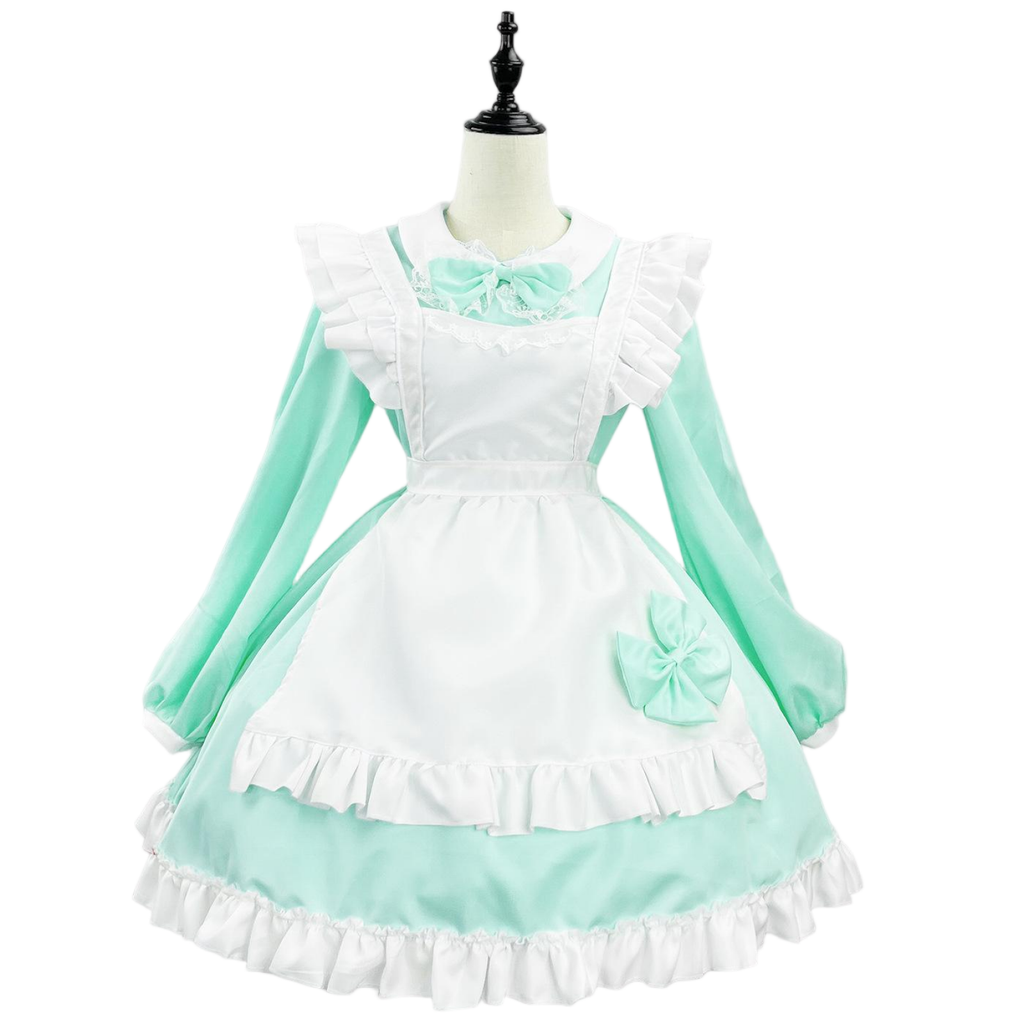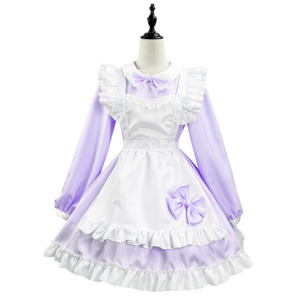 The AwwwCos 6 Kinds Girls Cute Japanese Style Long Sleeve Maid Cosplay Suit is an adorable and playful outfit perfect for Halloween or cosplay events. This knee-length A-line dress features long sleeves and comes with a white apron, adding to the traditional maid look. Available in six colors—black, blue, red, pink, purple, and yellow—the dress allows for plenty of customization to fit your style. Ideal for girls looking for a cute and charming costume, this maid cosplay suit is both fun and stylish, making it a perfect choice for festive occasions.