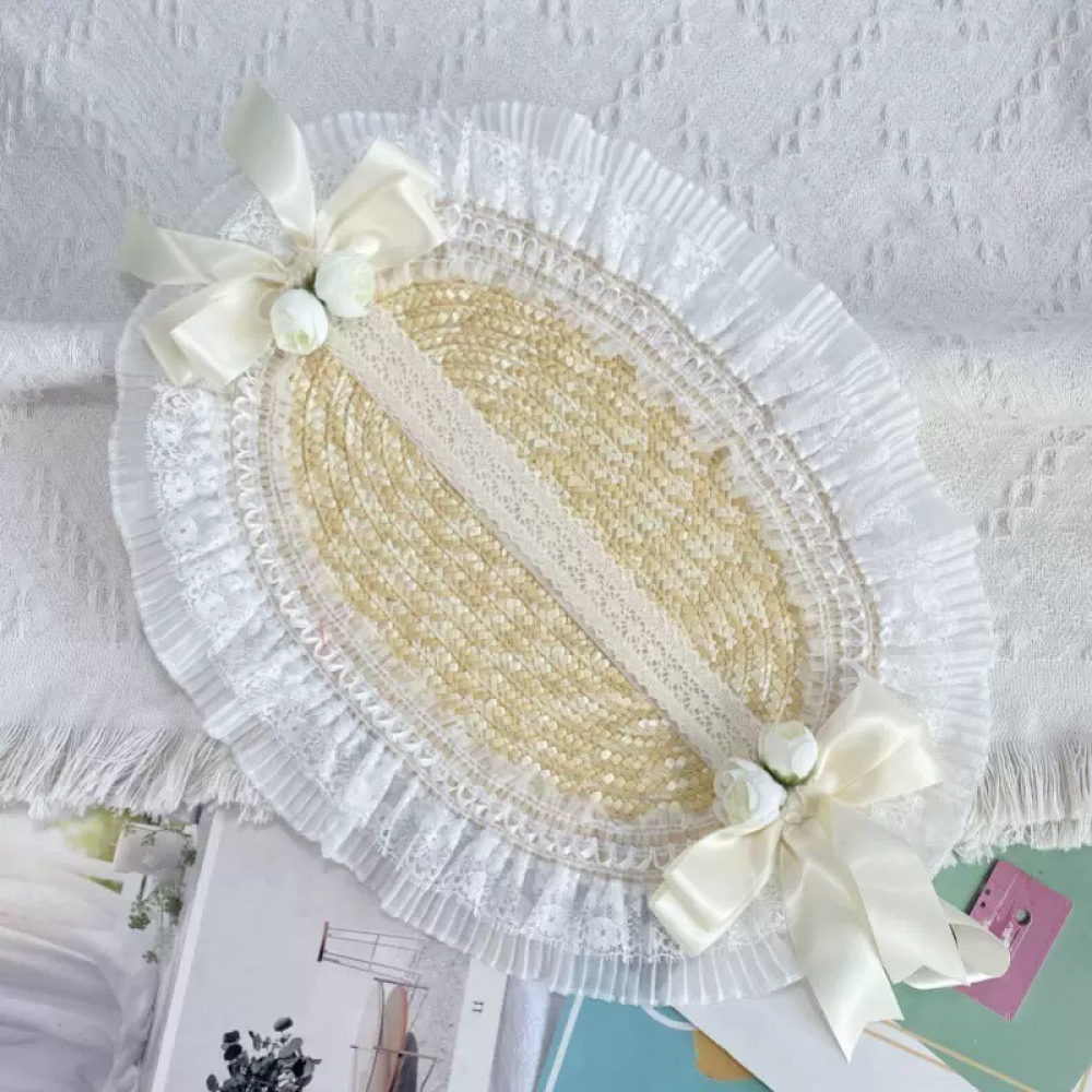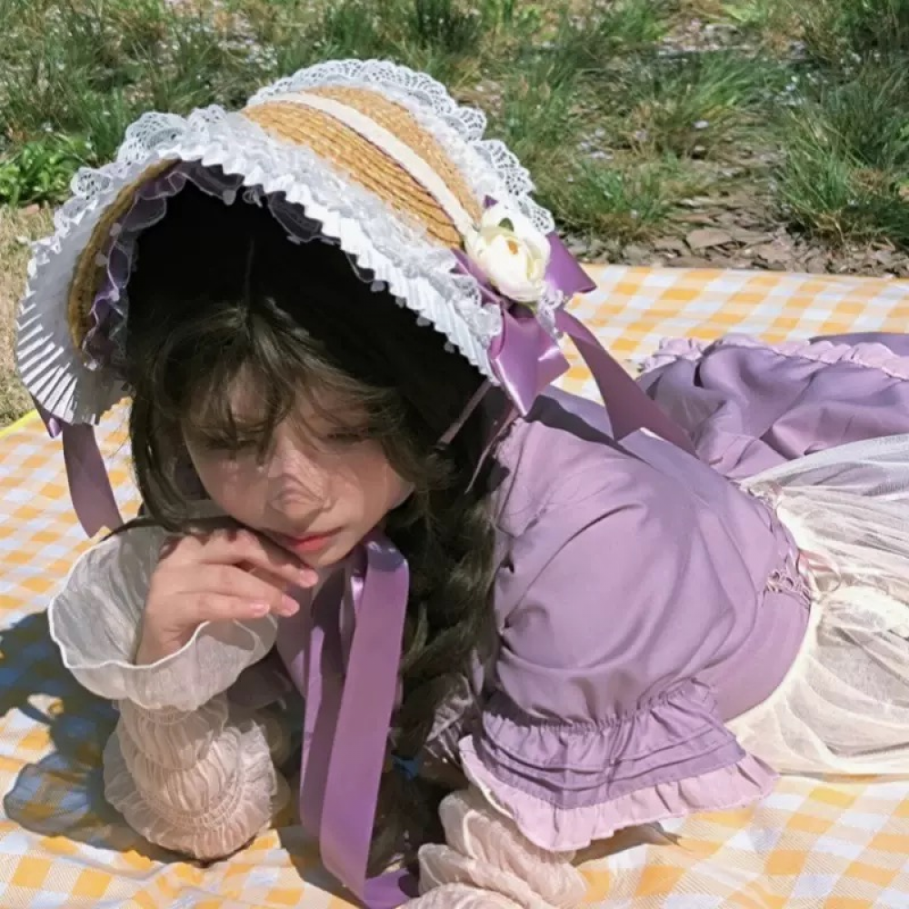 The AwwwCos 6 Kinds Multicolor Memories Women Summer Lolita Hand-made Bonette Straw Hat is a beautifully crafted accessory from the Lolita "Multicolor Memories" series. Each hat is meticulously handmade, featuring delicate elements such as ruffled edges, 3D flowers, lace trim, and ribbon bows—classic Lolita touches that make it both elegant and whimsical. Available in six vibrant colors—pink, purple, white, blue, and green—this straw hat is perfect for adding a charming and colorful finish to your Halloween or summer Lolita outfits.