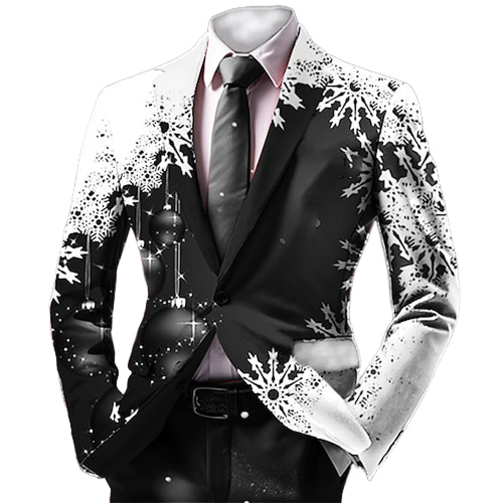The AwwwCos 9 Kinds Mardi Gras Casual Sweatsuits One Button Notched Lapel Floral Uniform is a stylish and festive option for the holiday season. The long-sleeve, slim-fit suit jacket features a single button closure and a notched lapel, adorned with Christmas elements like white Christmas trees and snowflakes, making it a perfect choice for Christmas celebrations. Available in nine different colors and styles, this uniform blends the festive spirit with a casual, chic look. It's ideal for holiday parties or any casual Christmas event where you want to stay stylish yet festive. experience.