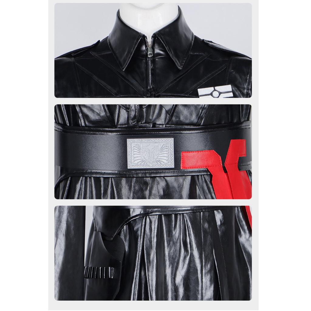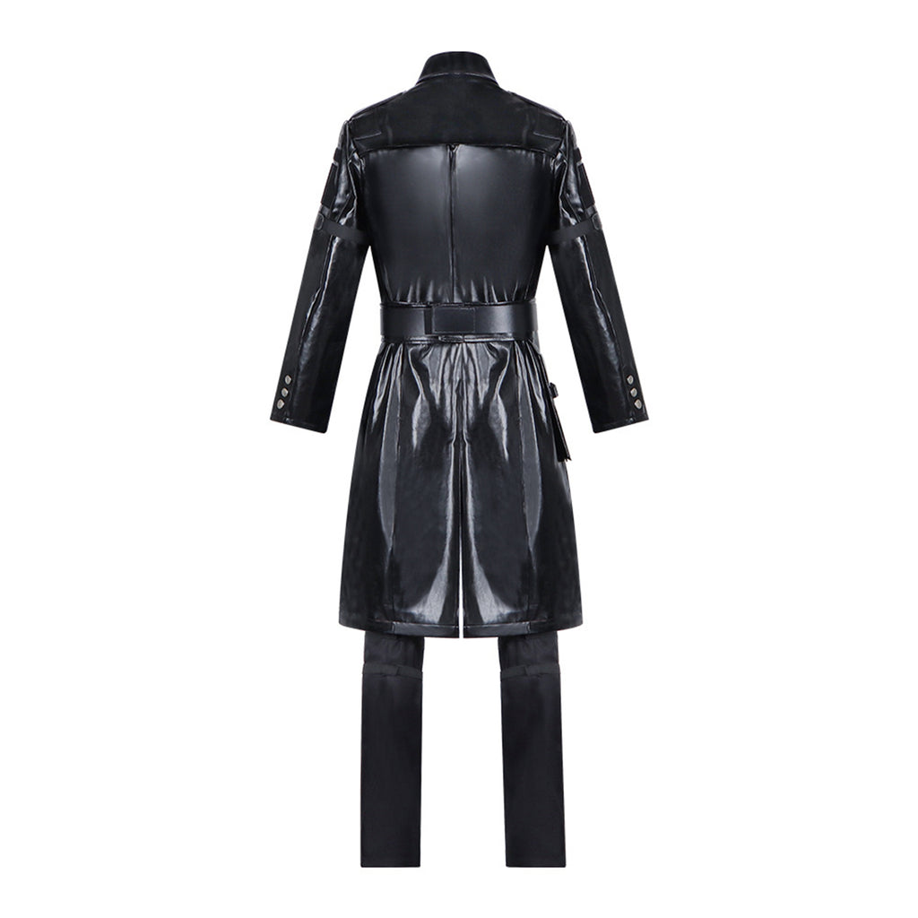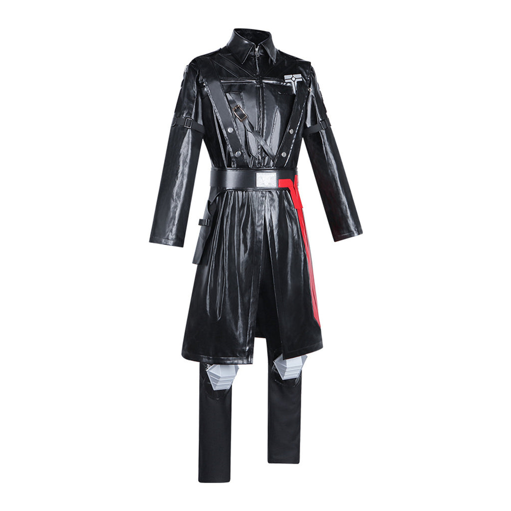 The AwwwCos Adult Men Game Delta Force Warden Ghroth Cosplay Costume features a sleek, long-sleeved coat made from shiny black faux leather, paired with matching black pants. The outfit is complete with accessories including a belt, holster, knee pads, chest accessories, and gloves, all designed to bring the iconic Delta Force Warden Ghroth character to life. Perfect for cosplay events, this costume offers a bold, combat-ready look with a touch of futuristic style.