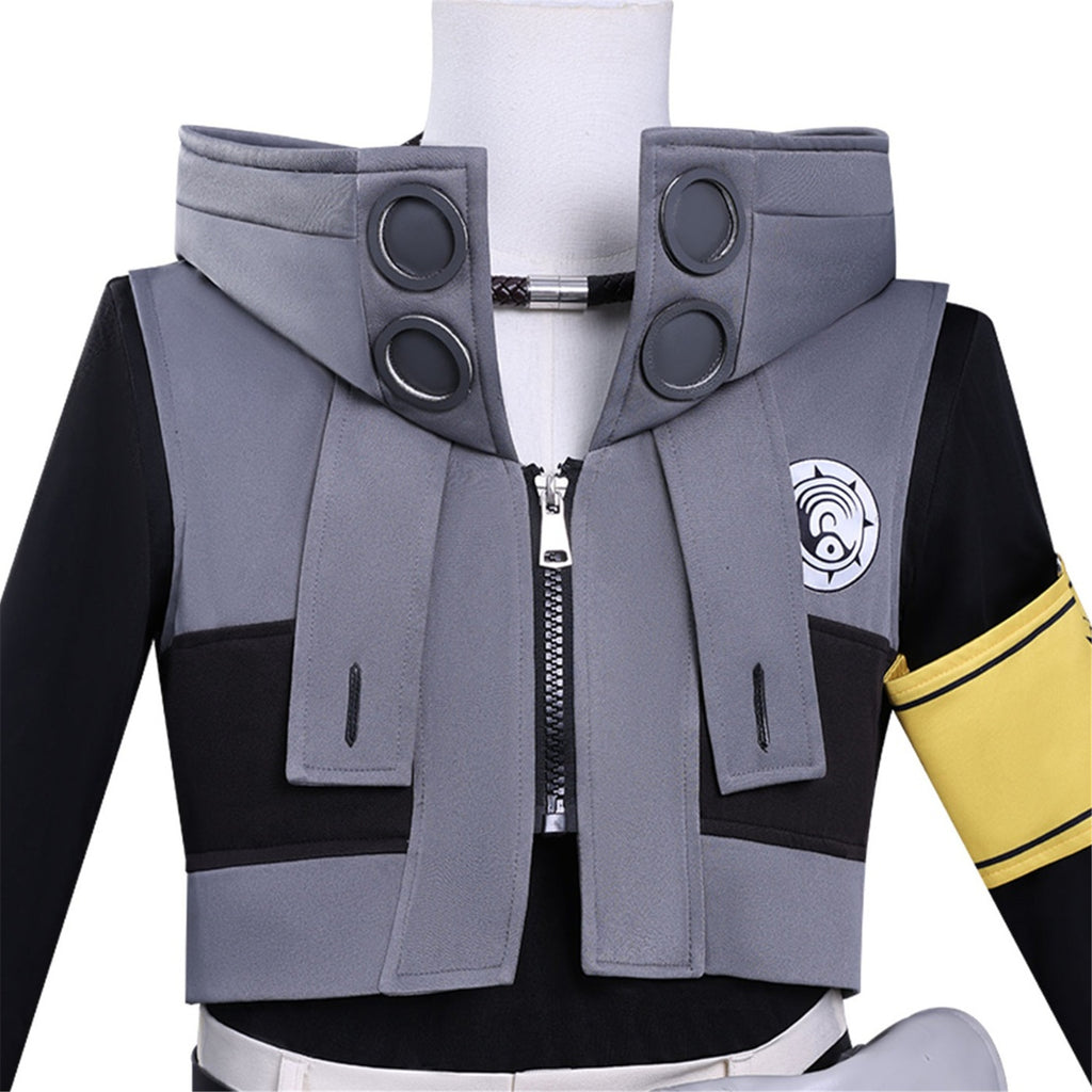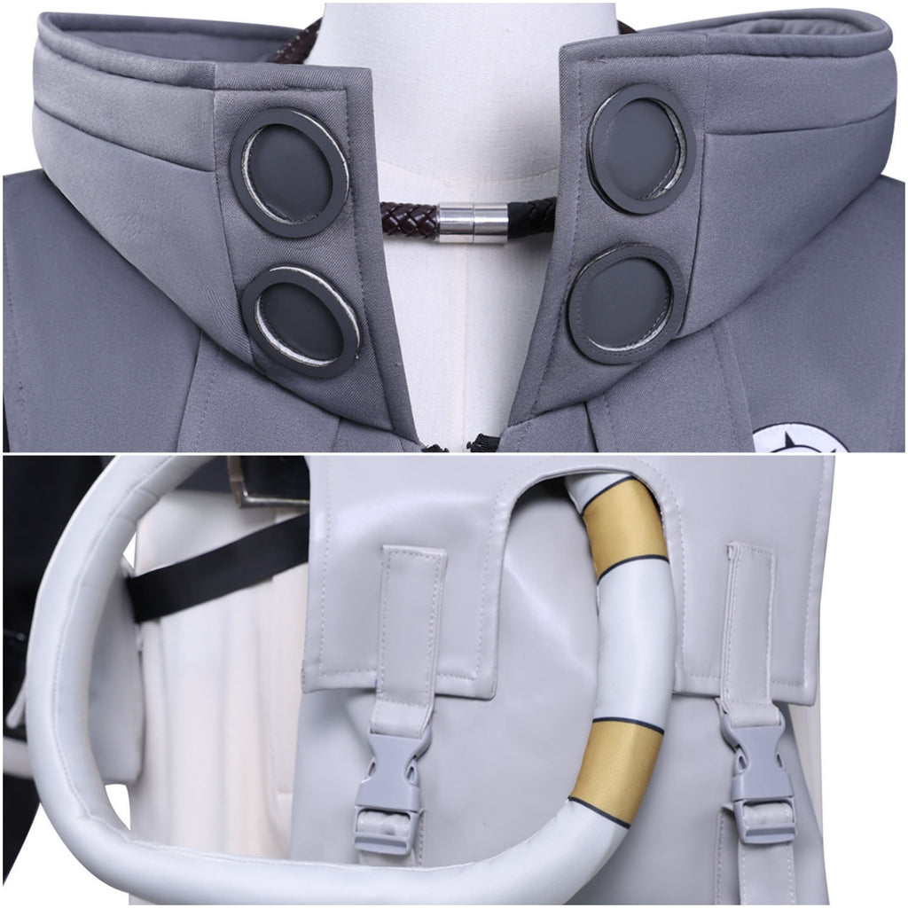 Include: Top,coat,pants,belt,armband,neck accessory,right waist bag,socks,gloves,back waist bag,left waist bag