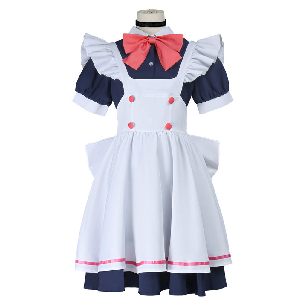 The AwwwCos Female Anime Dandadan Ayase Seiko Cosplay Costume Maid Apron Dress is a charming and detailed outfit inspired by the anime character Ayase Seiko. The costume features a white apron worn over a dark navy blue short-sleeve dress, creating a classic maid look with a modern twist. Accessories include a black faux leather choker, a pink bow tie, and black socks, adding extra flair. The ruffled headwear completes the ensemble, giving it an authentic maid appearance. This cosplay costume is perfect for fans of Dandadan who want to embody Ayase Seiko’s cute and stylish character.