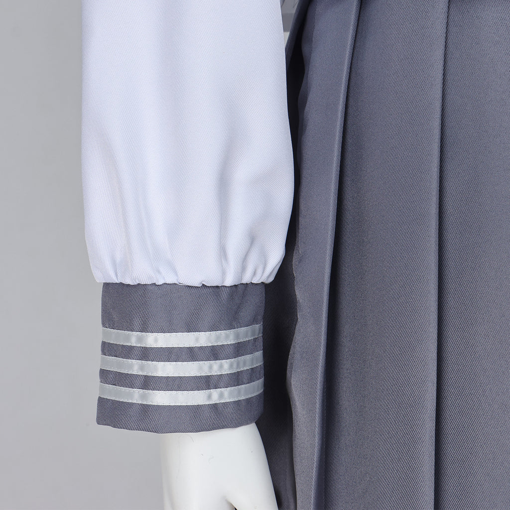 The AwwwCos Female Game Silent Hill Shimizu Hinako Cosplay Costume Daily Sailor Suits is a charming and elegant outfit, perfect for both cosplay and everyday wear. The costume features a long-sleeve white top paired with a grey knee-length pleated skirt, creating a soft and feminine silhouette. The look is completed with a red bow tie at the collar, adding a touch of contrast and sophistication. This versatile set not only captures the character’s essence for cosplay events but also offers a stylish and comfortable option for casual wear, making it ideal for various occasions.