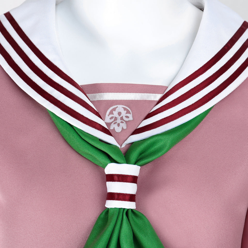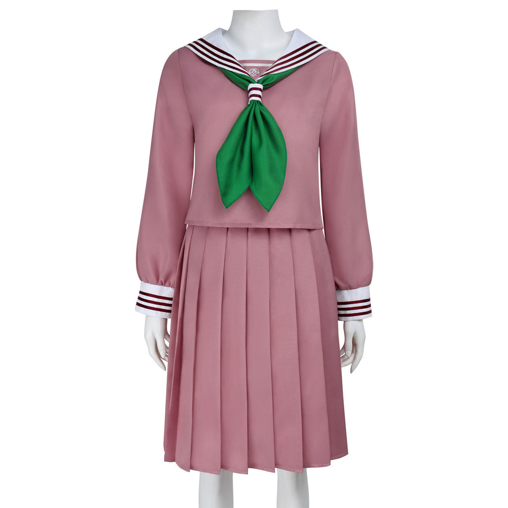 The AwwwCos Female Game Silent Hill Shimizu Hinako Cosplay Costume Pink Sailor Suits is a charming and elegant outfit, perfect for both cosplay and everyday wear. The costume features a long-sleeve pink top paired with a knee-length pleated skirt, creating a soft and feminine silhouette. The look is completed with a green bow tie at the collar, adding a touch of contrast and sophistication. This versatile set not only captures the character’s essence for cosplay events but also offers a stylish and comfortable option for casual wear, making it ideal for various occasions.