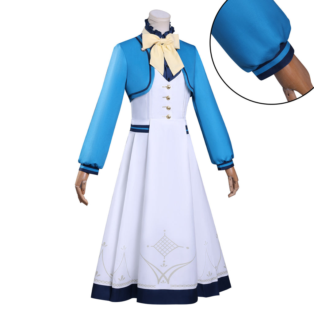 The AwwwCos Anime Silent Witch Chinmoku no Majo no Kakushigoto Kana Aizawa Cosplay Costume features a stylish long-sleeve blue outer coat paired with a white vest and skirt, perfectly capturing Kana Aizawa’s character design. The champagne-colored bowknot bow-tie add a sophisticated touch to the ensemble, while the brown curly wig complete the look. This costume is a great choice for fans of Silent Witch who want to recreate Kana Aizawa's distinctive style for cosplay events or themed gatherings, offering both elegance and authenticity.