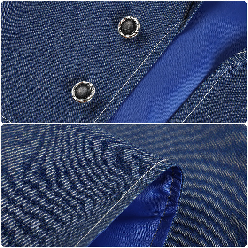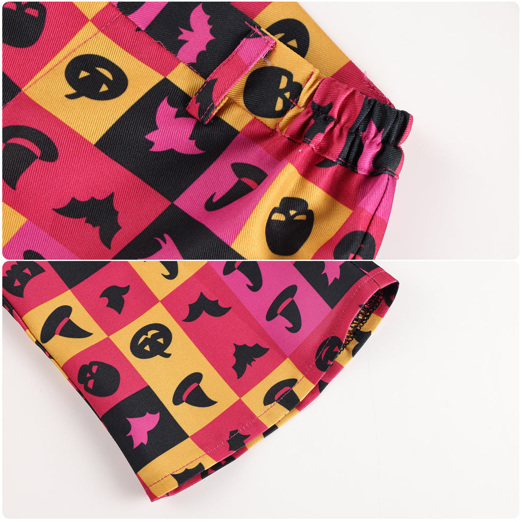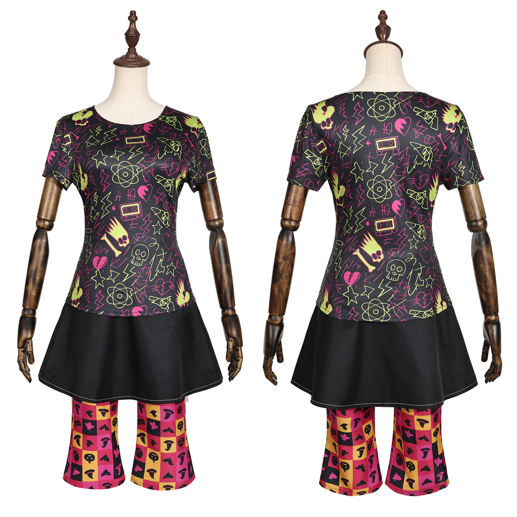 The AwwwCos Film Monster High Venus McFlytrap Cosplay Costume Performance Outfits is a fun and edgy outfit inspired by Venus McFlytrap from Monster High. The costume includes a blue sleeveless denim jacket paired with a short-sleeve shirt featuring a skull print, adding a rebellious touch. The look is completed with a super-short A-line black skirt and matching capri pants, which are adorned with festive Halloween-themed prints such as pumpkins, bats, and magic hats. This playful and unique ensemble captures Venus's quirky and vibrant personality, making it perfect for Monster High fans looking to bring the character to life with a mix of style and spookiness.