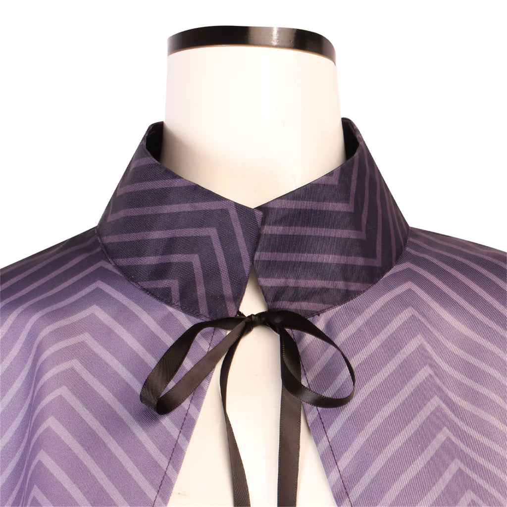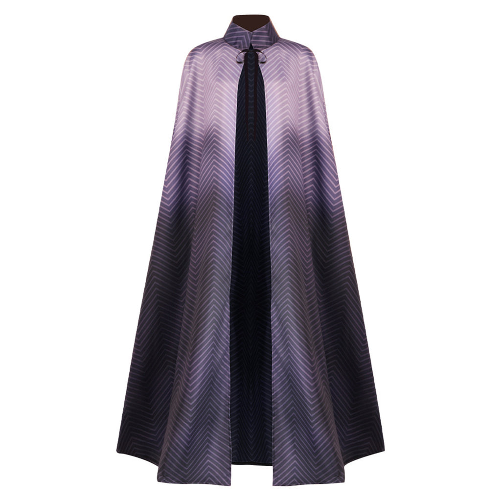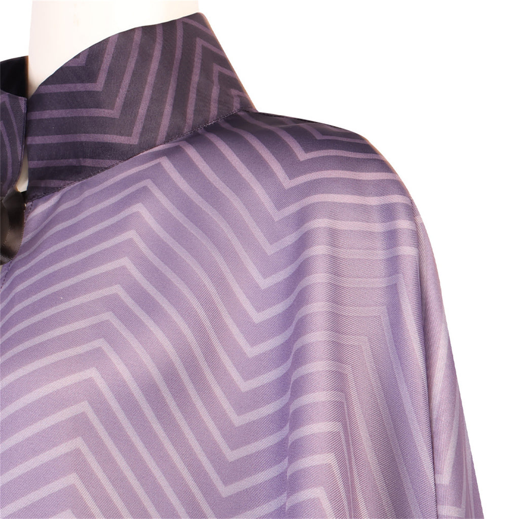 "Transform into the iconic Snow Queen with AwwwCos's breathtaking Film Princess cosplay costume! This exquisite ensemble features a majestic floor-length cape with stunning ombre violet-to-purple striping that cascades dramatically from high neckline to hem, perfectly capturing the character's regal yet mysterious aura. The flowing cape's luxurious fabric and color gradient mirror the Snow Queen's enchanting and powerful personality from the film, making every movement look magical. Designed with meticulous attention to detail, this costume is ideal for bringing the beloved fairytale character to life at cosplay events, Halloween parties, or themed photoshoots while ensuring both elegance and comfort."