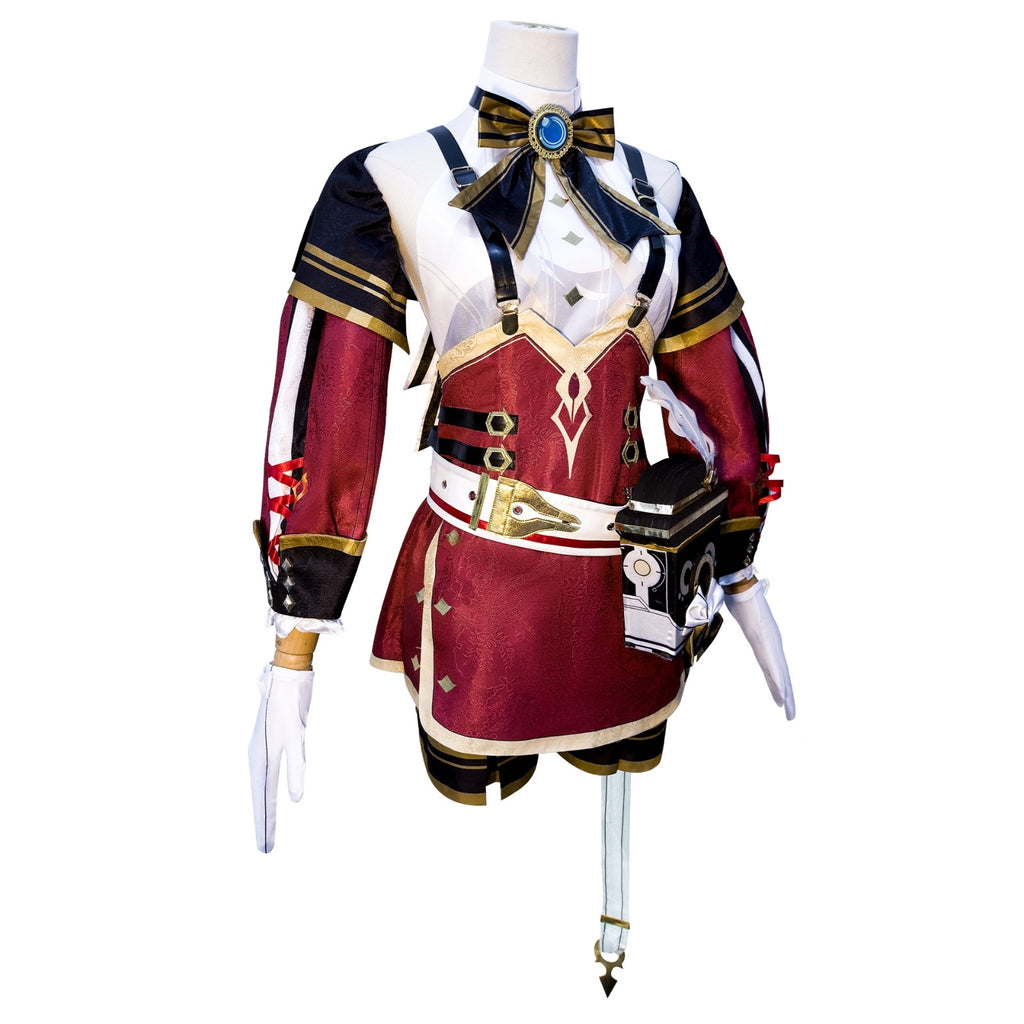 Outfit Information: Genshin Impact Fontaine Reporter Charlotte Cosplay Costume and Accessories as picture shows.