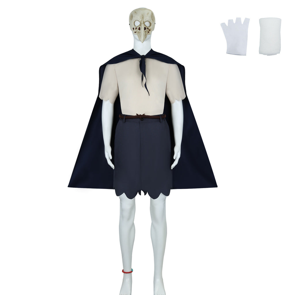 Include: Cloak, top, pants, waist belt, gloves, straps, ankle chains