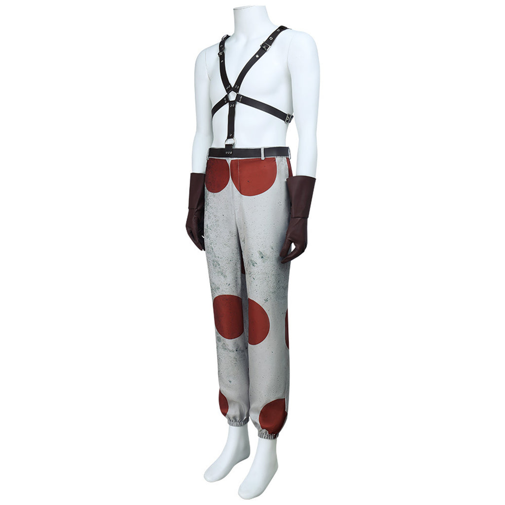 The AwwwCos Game Twisted Metal Sweet Tooth Cosplay Costume Suspenders Pants is a detailed and authentic outfit inspired by the character Sweet Tooth from Twisted Metal. The gray pants feature symmetrical circular patterns, capturing the distinct look from the game. The suspenders are made from high-quality brown faux leather, providing both durability and style. Matching brown gloves complete the look, ensuring you embody Sweet Tooth’s iconic and menacing appearance. Perfect for Twisted Metal fans, this cosplay costume is ideal for game-themed events, cosplay conventions, or any occasion where you want to showcase your love for this classic character.