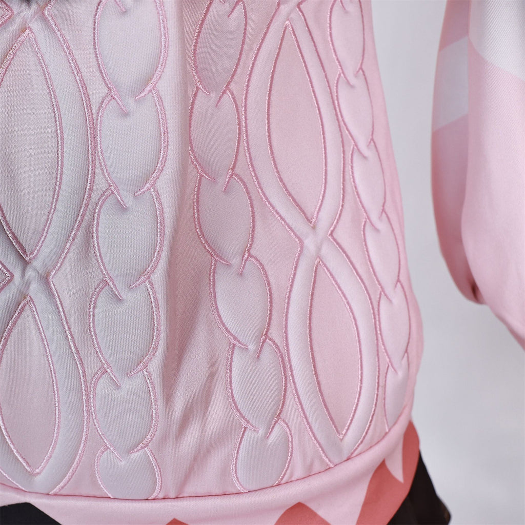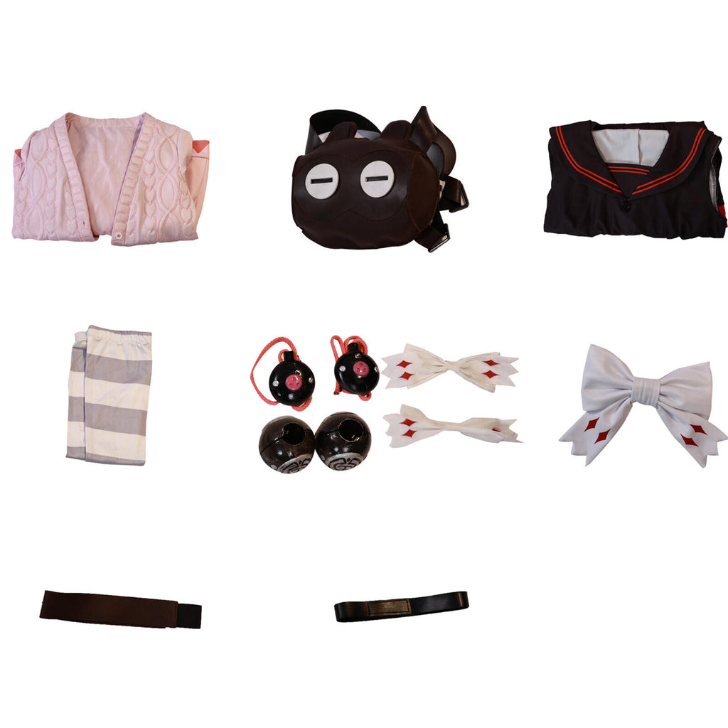 The AwwwCos Game Zenless Zone Zero Ukinami Yuzuha Cosplay Costume is a captivating and stylish outfit, perfect for fans of the game. The costume features a black sailor-style dress paired with a pink zip-up jacket, creating a unique blend of playful and edgy aesthetics. A cute black cat-shaped mini bag adds a quirky touch, while accessories such as socks, headwear, a bow tie, leg loops, and a neck ornament complete the ensemble. For a fully immersive look, the set also includes optional black thigh-high boots and a matching wig, making it an ideal choice for those looking to channel Ukinami Yuzuha's distinctive style from the game in both comfort and flair.