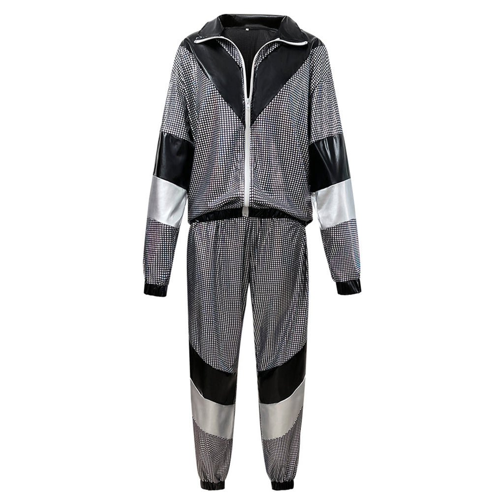 AwwwCos is offering the exclusive Gold Silver Color Block 2 Piece 80s Retro Hip Hop Disco Tracksuit Jacket Pants . If you are in search of a perfectly fitting Disco Cosplay Costume, look no further than AwwwCos. With our wide range of high-quality cosplay costumes, we are your ultimate destination for all your cosplay needs. Get ready to impress everyone at the event with an authentic and meticulously crafted Gold Silver Color Block 2 Piece 80s Retro Hip Hop Disco Tracksuit Jacket Pants from AwwwCos.