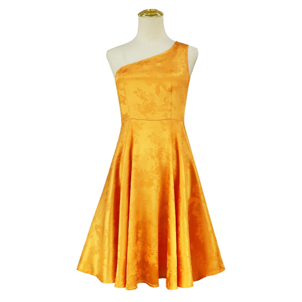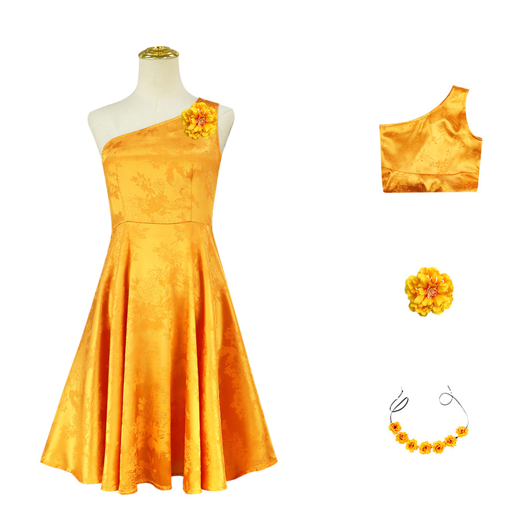 The AwwwCos Kids Adult Girls Movie Judy Hopps Fru Fru Cosplay Costume A Line Dress is an elegant and playful outfit inspired by Judy Hopps from Zootopia. The ankle-length dress is a fashionable one-shoulder design, adding a chic touch to Judy's character. The adult version features a short-sleeve V-neck pink dress with floral prints and is accessorized with a necklace and bracelet for a more sophisticated look. For the kids' version, the dress is paired with a cute butterfly bow headband, perfect for younger fans. Both versions include a 3D floral headband and shoulder decoration, bringing the dress to life with vibrant details. This costume is perfect for those who want to embrace Judy's stylish and charming character in a fun, fashionable way.
