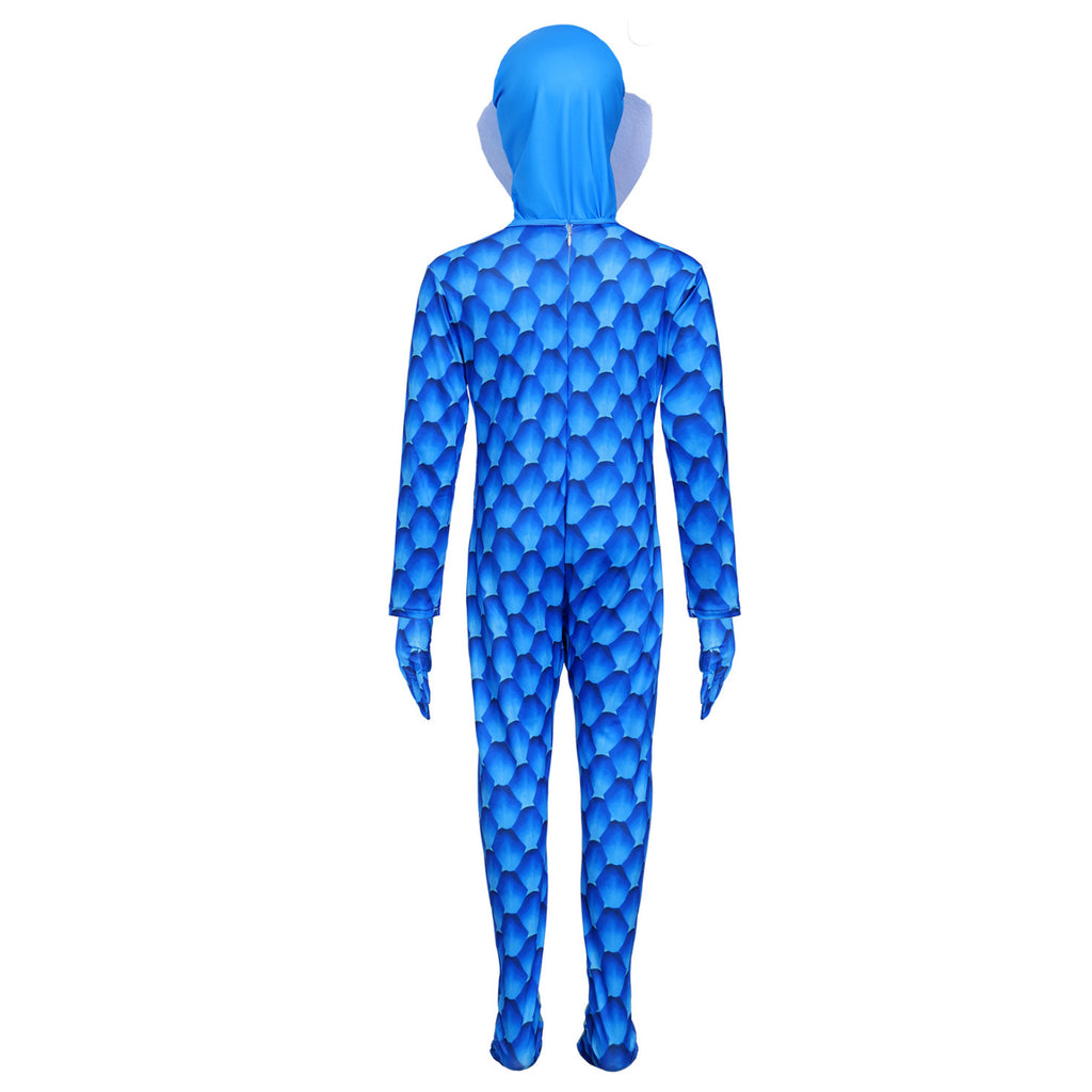 Introducing the AwwwCos Kids Adult Rise of the Non-Mammalians Snake Gary Cosplay Costume! This striking long-sleeved blue jumpsuit features a unique snake scale print that brings the character to life. The costume includes a detachable hood and gloves, making it easy to wear and remove. With a convenient back zipper, getting in and out of this outfit is a breeze. Perfect for cosplay events, Halloween, or themed parties, this costume will surely make you stand out and embody the essence of Snake Gary!