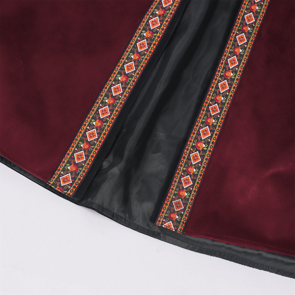 The AwwwCos Men Medieval Pirate Cosplay Costume Role Playing Waistcoat Sleeveless Viking Vest is a striking piece perfect for Halloween or medieval-themed events. This short sleeve, a line vest features a embroidery trim along the neckline and front opening, adding a touch of elegance to its rugged look. Available in black, brown, and red, this versatile waistcoat channels a Viking or knightly aesthetic, making it ideal for cosplay, themed parties, or any event where you want to stand out. The sleeveless design ensures comfort and ease of movement, while the vintage style brings an authentic medieval vibe.