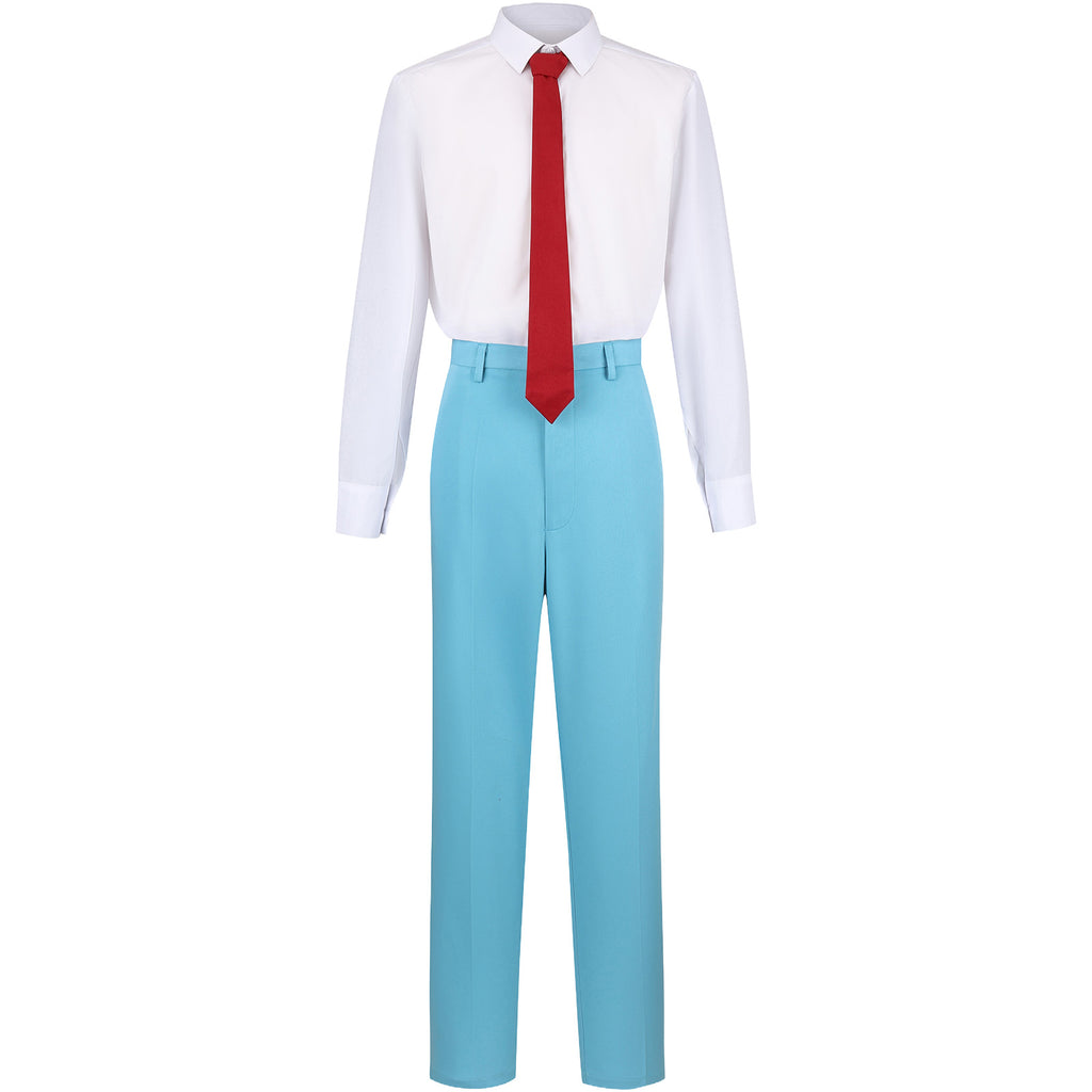 The AwwwCos Men Musical Maybe Happy Ending Oliver Cosplay Costume School Uniform is a charming outfit inspired by the musical Maybe Happy Ending. This costume features a classic long-sleeve white shirt paired with light blue pants, capturing the youthful, school uniform look. The red tie adds a vibrant touch, completing the ensemble. Perfect for cosplay events or casual everyday wear, this costume effortlessly combines style and comfort, making it ideal for fans of the musical who want to embrace the character’s iconic look.