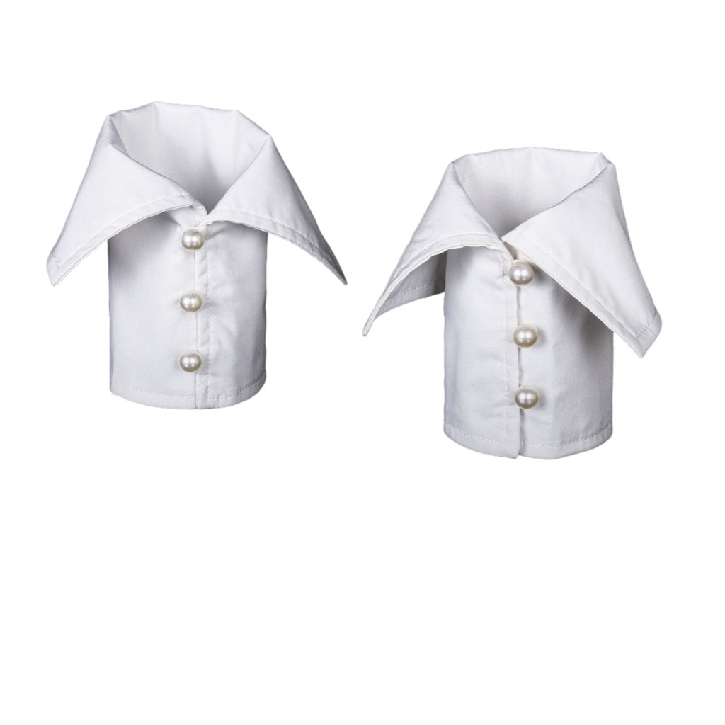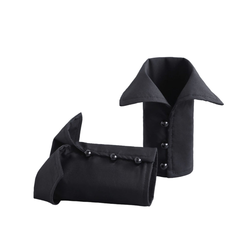 The AwwwCos Men Women Cosplay Accessory Fake Shirt Collar Wrist Cuffs for Wedding Party is a stylish and elegant accessory perfect for adding a touch of sophistication to your outfit. The shirt cuffs made of refreshing fabric are available in black and white, the button is made of elegant artificial pearls,offering versatile options to match your costume or dress. There are two styles of fake collars: rounded and pointed.These accessories can be worn separately as needed, allowing you to customize your look for a wedding, party, or Halloween event. The delicate design adds a graceful and refined touch to any ensemble.