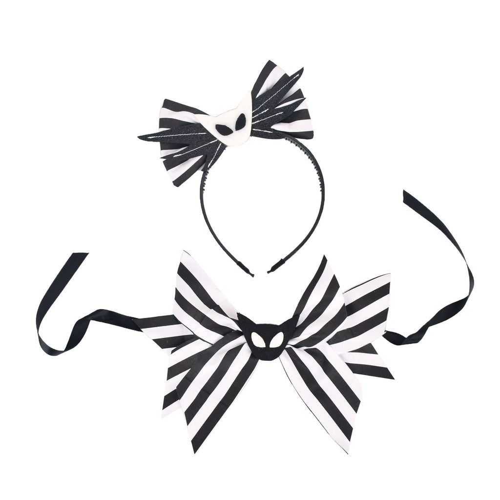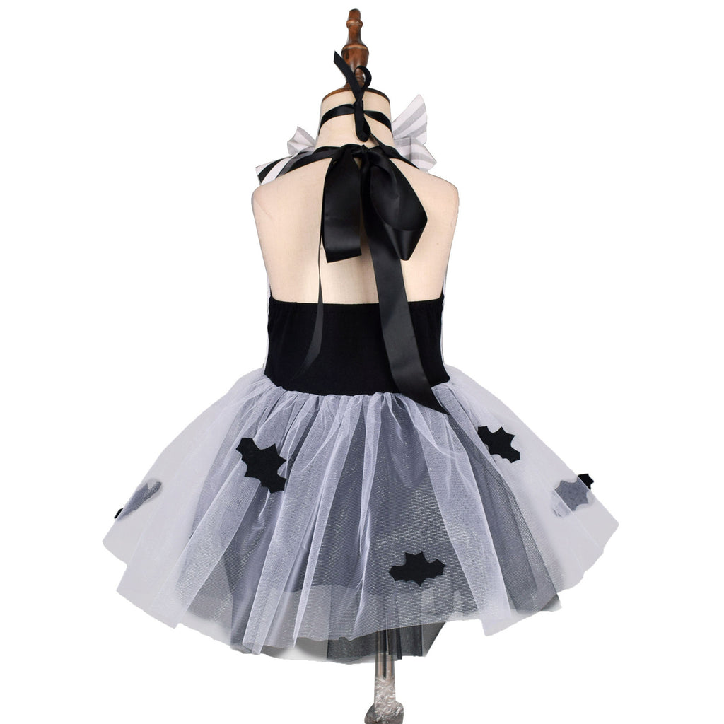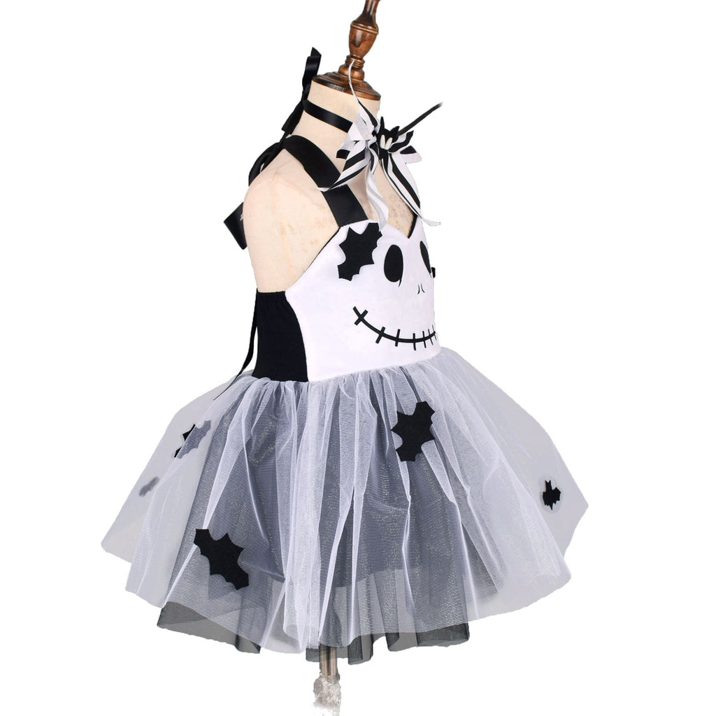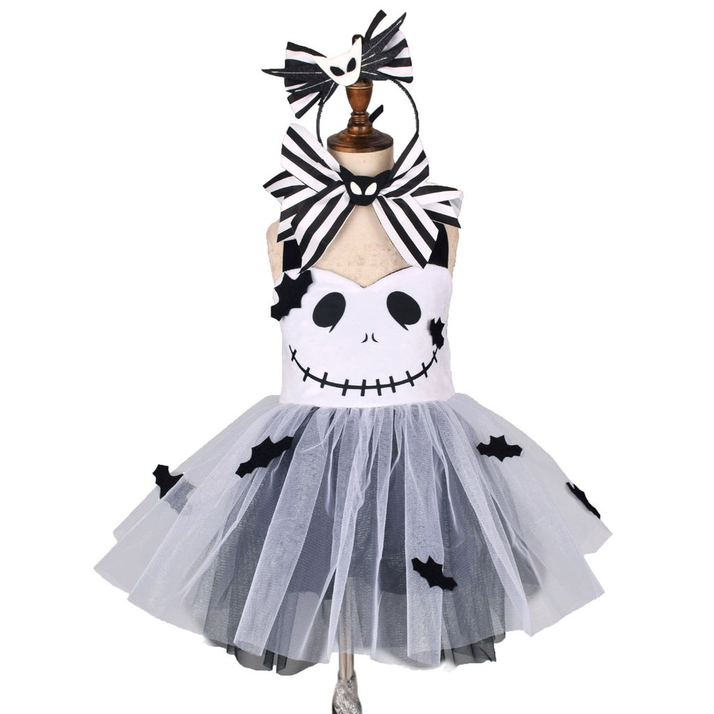The AwwwCos Toddler Infant Kids Girl Fancy Dress Costume Jack Women Cosplay Outfit is an adorable and spooky outfit, perfect for Halloween or birthday parties. This black A-line dress features Jack Women image design, creating a fun and festive look. The dress is made from mesh fabric for a playful, lightweight feel. Full Set also comes with a headband and bow-tie, completing the Halloween vibe. This costume is ideal for little ones who want to embrace their spooky side in style and comfort.