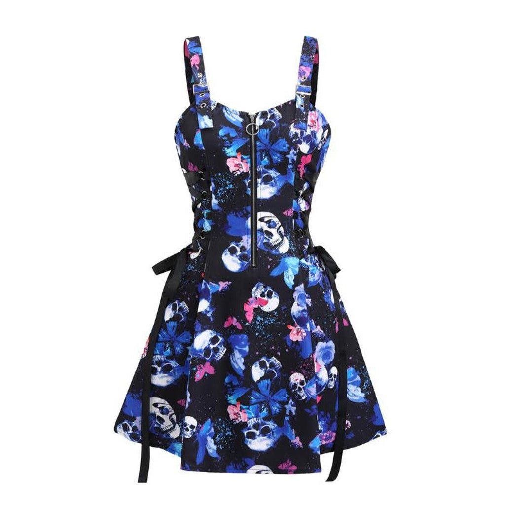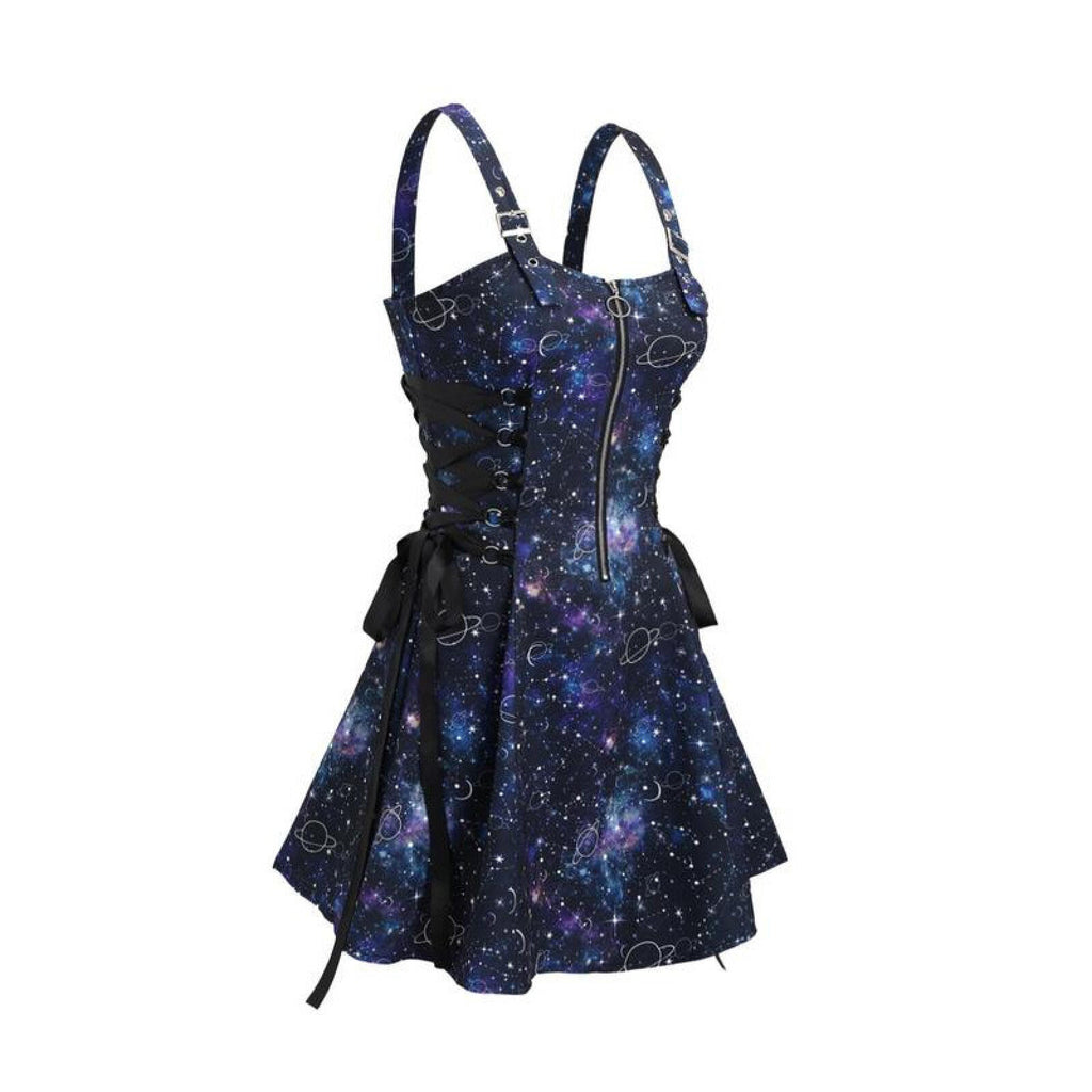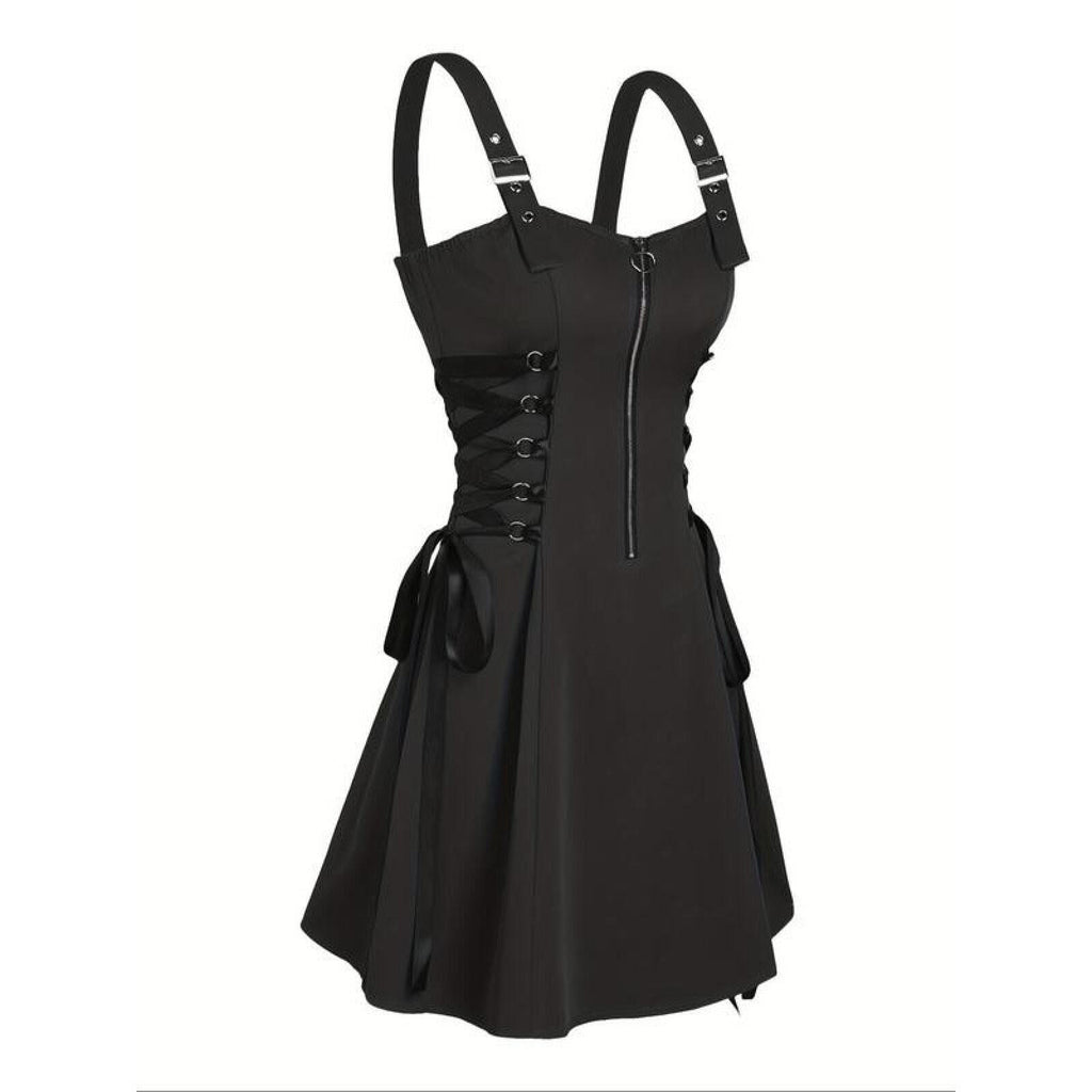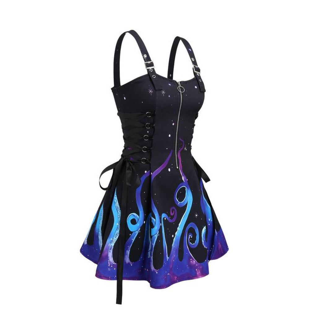 The AwwwCos Women Gothic Vampire Cosplay Lace Up Mini Spaghetti Strap Vintage Print Dress is a stunning and versatile outfit perfect for Halloween or gothic-themed events. This A-line, knee-length dress features a form-fitting design with a front zipper for easy wear. The lace-up detailing on the sides of the waist allows for adjustable comfort, while the metal buckles on the spaghetti straps offer length customization. Available in 15 different styles, the dress comes in both printed and solid colors, giving you plenty of options to match your unique gothic or vampire look.
