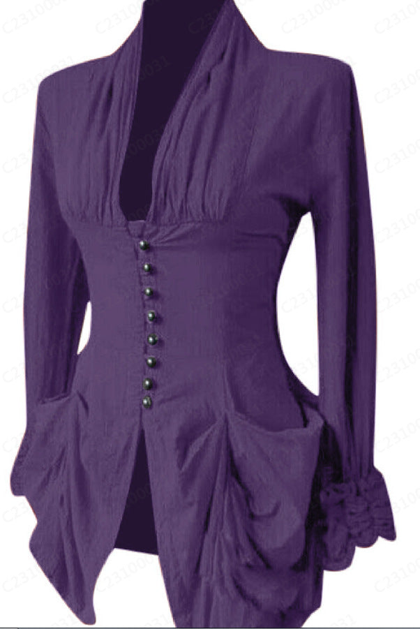 AwwwCos is offering the exclusive Women Spring Solid Color Elegant V-Neck Single Breasted Long Sleeve Top. If you are in search of a perfectly fitting Formal Cosplay Costume, look no further than AwwwCos. With our wide range of high-quality cosplay costumes, we are your ultimate destination for all your cosplay needs. Get ready to impress everyone at the event with an authentic and meticulously crafted Women Spring Solid Color Elegant V-Neck Single Breasted Long Sleeve Top from AwwwCos.