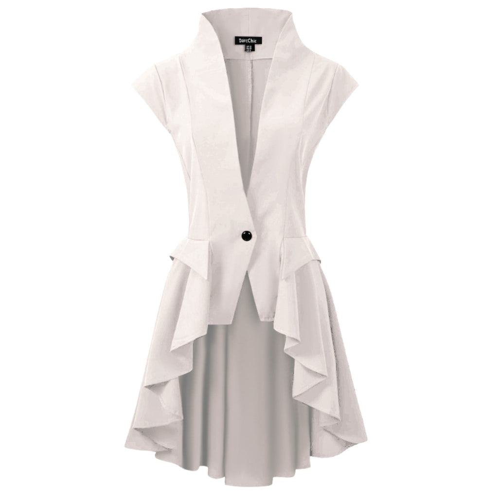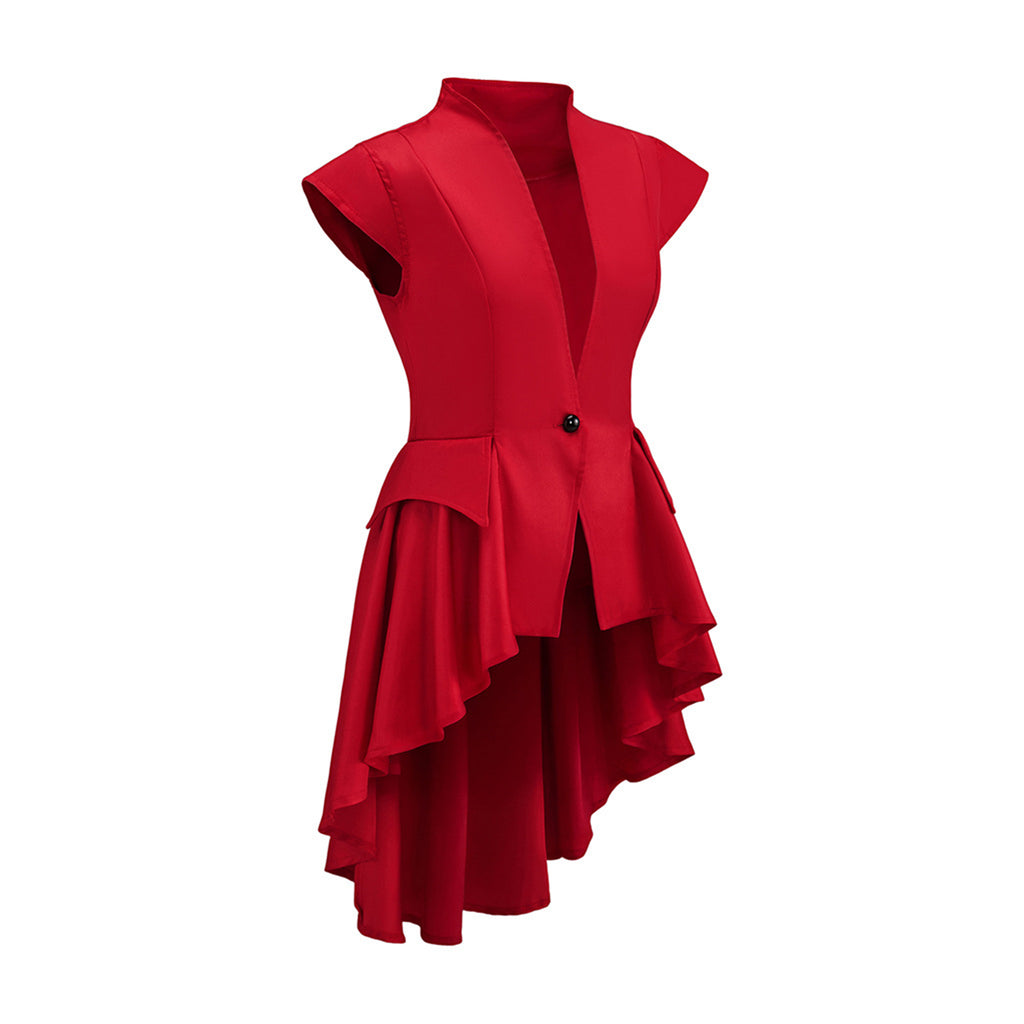 The AwwwCos Women Steampunk Cosplay Jackets Tailcoat Cap Sleeve Coat Deep V Neck Tops is a striking and stylish piece, perfect for Halloween or steampunk-themed events. The short-sleeve, deep V-neck design adds a touch of boldness, while the high-low dress with elegant ruffles at the hem creates a dynamic, flowy look. This Victorian-inspired coat is perfect for those looking to embrace a pirate or steampunk aesthetic, with its combination of dramatic flair and vintage charm. Ideal for adding an edgy yet refined touch to any costume party or themed gathering.