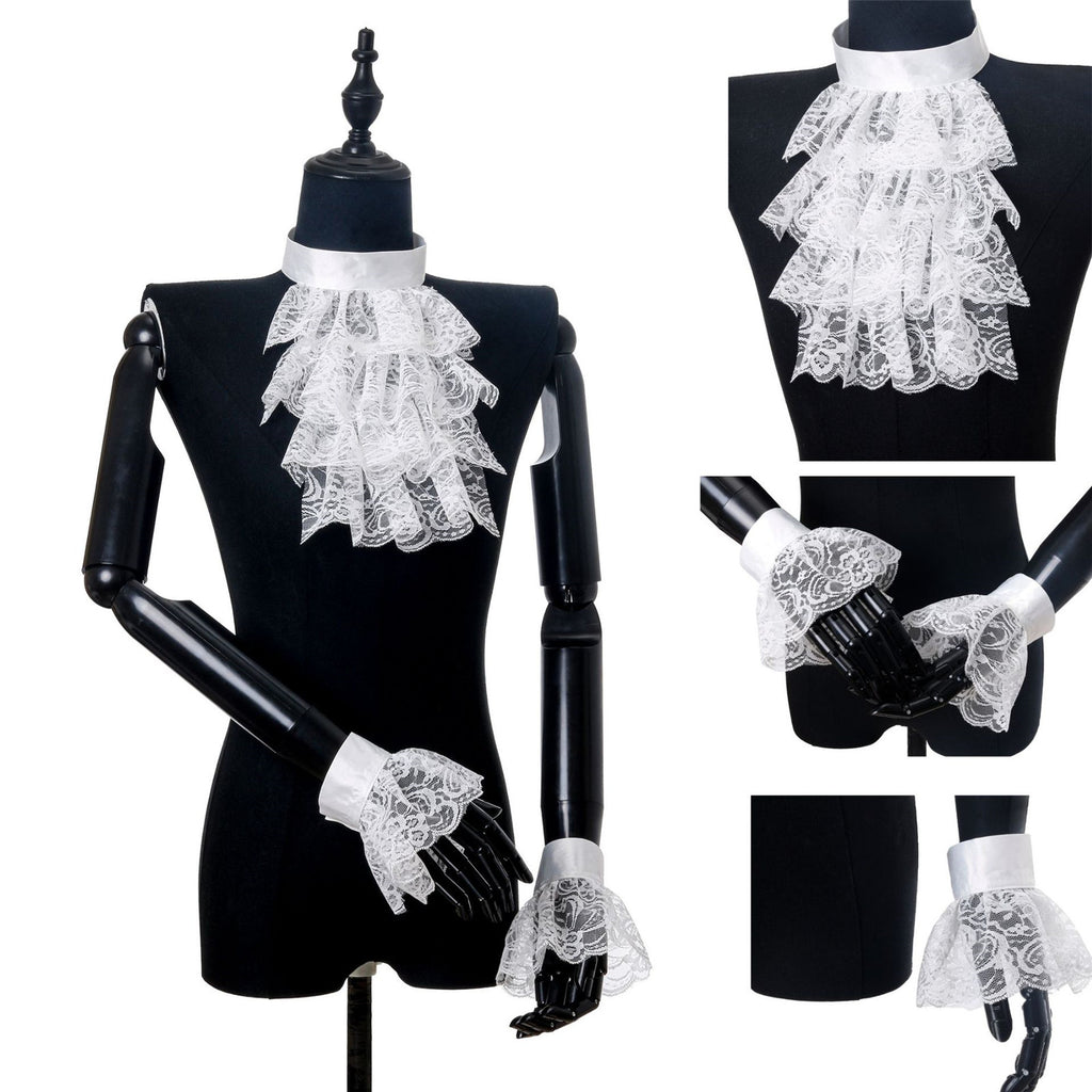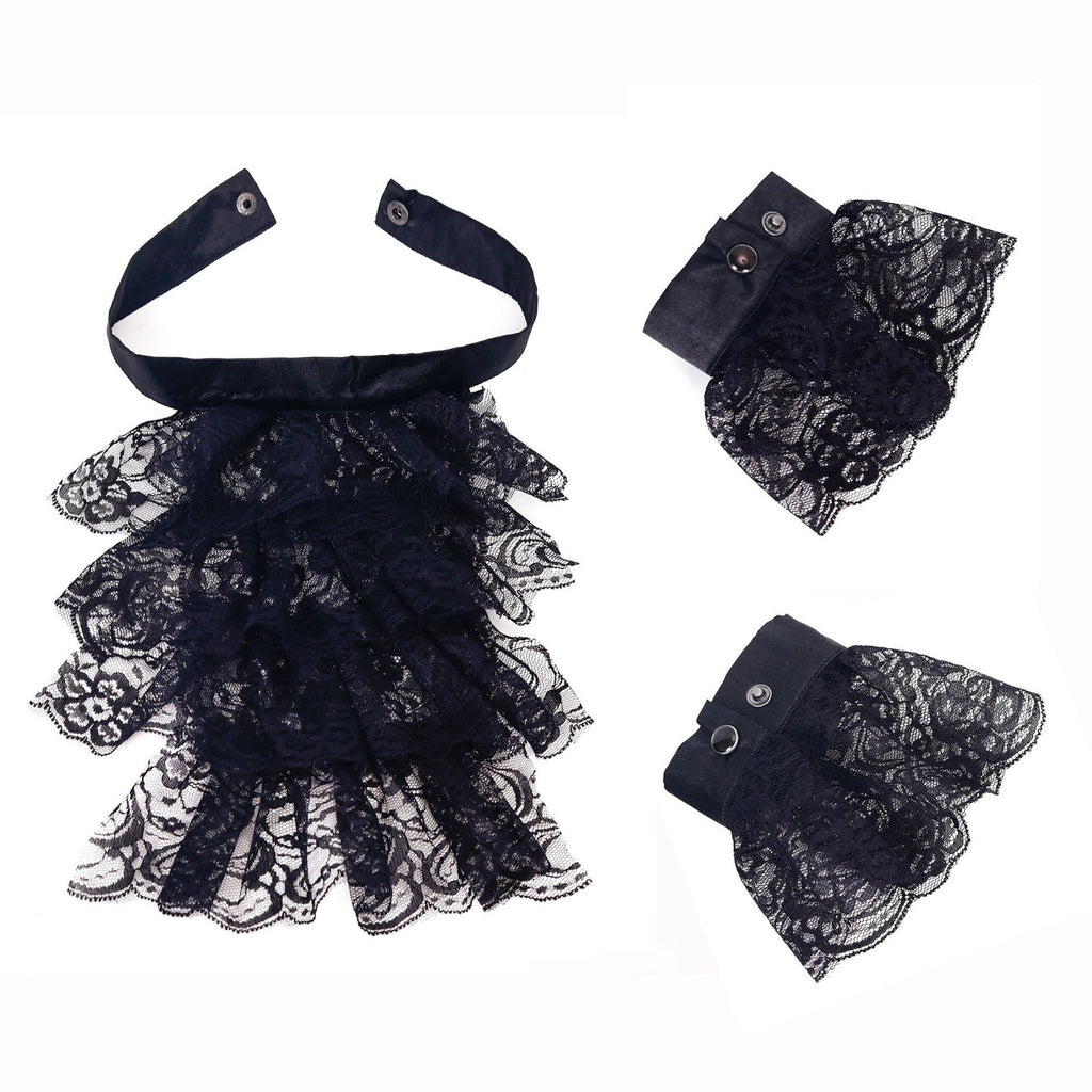 The AwwwCos Women False Collar Wrist Cuffs for Wedding Party Fake Sleeve Half Shirt Collar is a stylish and elegant accessory perfect for adding a touch of sophistication to your outfit. The lace-made ruffled false collar and cuffs come in both black and white, offering versatile options to match your costume or dress. These accessories can be worn separately as needed, allowing you to customize your look for a wedding, party, or Halloween event. The delicate design adds a graceful and refined touch to any ensemble.
